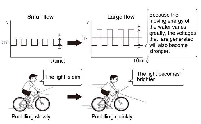 由于水的移動(dòng)能量變化很大,所產(chǎn)生的電壓也會(huì)變得更強(qiáng)。