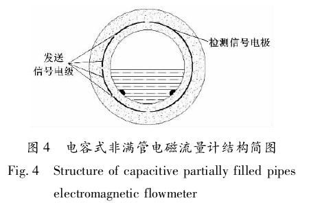 ②電容式非滿管軟化水流量計h。電容式非滿管軟化水流量計結(jié)構(gòu)簡圖如圖4所示。、檢測信號電極  發(fā)送信號電