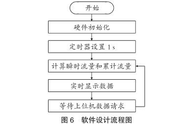 上電后程序?qū)SP的硬件資源進(jìn)行初始化,包括中斷系統(tǒng)、GPIO口、定時(shí)器/計(jì)數(shù)器、通信端口及基本的時(shí)鐘設(shè)置。程序每秒對(duì)接收到的脈沖進(jìn)行計(jì)數(shù),其除以儀表系數(shù)后的結(jié)果作為瞬時(shí)流量,同時(shí)在時(shí)間上對(duì)瞬時(shí)流量進(jìn)行累積,計(jì)算出兩種流量后,將其實(shí)時(shí)顯示在液晶顯示屏上,同時(shí)將數(shù)據(jù)保存,**等待上位機(jī)電腦對(duì)數(shù)據(jù)的讀取。通信采用MODBUS協(xié)議,波特率為9600b/s,無(wú)校驗(yàn),8位數(shù)據(jù)位,1位停止位。圖6為微處理器功能設(shè)計(jì)流程圖。