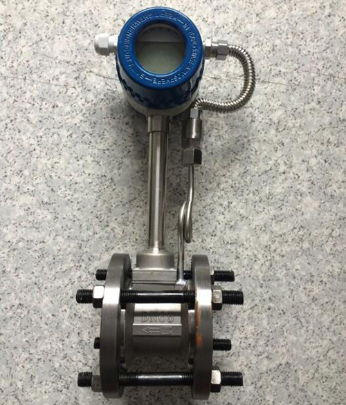 2、溫度補(bǔ)償一體型渦街流量計(jì)還帶有溫度傳感器,可以直接測(cè)量出飽和蒸汽的溫度并計(jì)算出壓力,從而顯示飽和蒸汽的質(zhì)量流量。