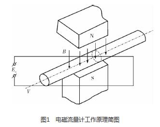 堿液計量表是利用法拉*電磁感應定律設計的流量測量儀表,用于測量導電液體的體積流量。根據(jù)法拉*電磁感應定律,當導體切割磁力線運動時,導體內(nèi)將產(chǎn)生感應電動勢Ex(圖1),方向根據(jù)右手定則確定,感應電動勢Ex的大小與磁場的磁感應強度B、傳感器管道的內(nèi)徑D和流過導電液體的流速V成正比,B、D、V三者相互垂直,即Ex=BDV。