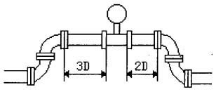 再將兩臺口徑為φ50mm和φ40mm高爐煤氣流量計配裝整流器后,分別安裝在φ80mm工以管道上,且儀表上游尉為一個平面內(nèi)兩個90°彎頭,變徑整流器前端與*二個90°彎頭距離為3倍工藝管內(nèi)徑長段,進行水標(biāo)定,工藝圖如圖3,實驗數(shù)據(jù)見表2