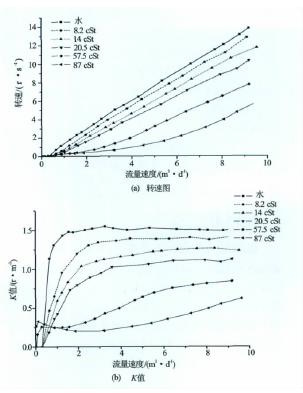 圖1甲醇介質(zhì)流量計對不同茹度條件的響應(yīng)轉(zhuǎn)速圖和K值