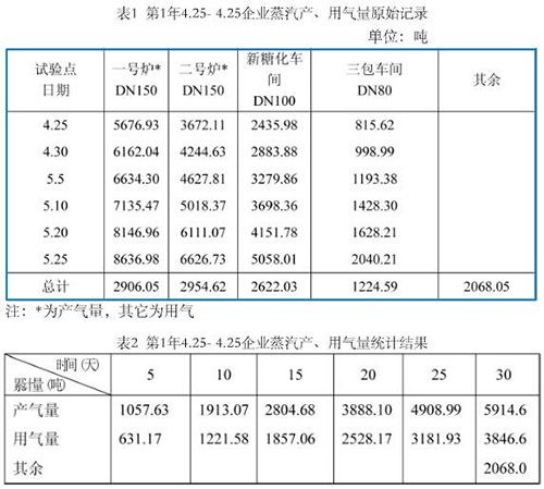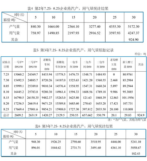 (1)綜上數(shù)據(jù),圖表可看出煙氣流量計(jì)測量飽和蒸汽,流量數(shù)據(jù)顯示清晰,穩(wěn)定可靠,其產(chǎn)、用氣量隨著流量計(jì)的完善,其差值變小了,也即使用部門越多,其消耗越少。