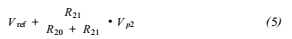 整個電路的工作過程為:當(dāng)P2.9為高電平時,Q1、Q2、Q3、Q4導(dǎo)通,此時Q5的基極電流為零,Q5截止,此時P2的端口2輸出+24V的電壓。此時P2.8為低電平,Q6、Q7、Q8、Q9,此時有電流流經(jīng)Q10基極,并使其基極和發(fā)射級導(dǎo)通,Q10的功能相當(dāng)于一個二極管的作用,此時P1端口沒有電壓輸出。那么,A/D轉(zhuǎn)換器的參考輸入端Vref(+)為: