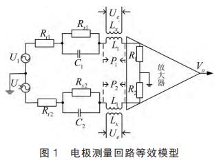 提出在硬件電路上加入模擬開關, 干擾尖峰到來時斷開模擬開關避免干擾進入后級電路,尖峰過去重新打開模擬開關;K.Saito 等提出漂移校正法,先以高勵磁頻率進行勵磁,在勵磁過程中插入低勵磁頻率提取用于漂移校正的非固定微分噪聲分量,但在插入的低勵磁頻率段漿液噪聲較大且很難將漿液噪聲與流量信號分離,此時的校正因子非單純的非固定噪聲分量,改進措施是長時間取平均值得到穩(wěn)定因子。 傳統(tǒng)方法是同步采樣保持法,即在磁場穩(wěn)定階段采樣。 其他消除干擾的方法有設置干擾補償機構(gòu)、控制勵磁電流變化率減小干擾幅值、矩形波代替梯形波、希爾伯特黃變換結(jié)合傅里葉變換和程控增益技術等。經(jīng)上述對現(xiàn)有的文獻分析與總結(jié)可知, 當前消除微分噪聲主要從信號處理方面入手,并未對影響噪聲的因素加以研究。 本文建立電極測量回路等效模型,給出仿真模型搭建、參數(shù)取值和仿真結(jié)果分析。
