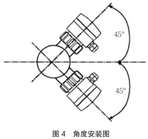 垂直安裝時(shí)確保流向由下而上,如圖 4 中箭頭所示,應(yīng)與管道水平中心線(xiàn)成 45 度角安裝高壓電磁流量計(jì)