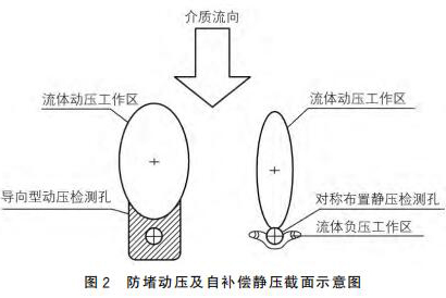 新智能分體式電磁流量計采用拋物面導(dǎo)向型結(jié)構(gòu)作為動壓測點,采用對稱自補償型式的靜壓測點,可以有效地解決來流方向偏流時信號的穩(wěn)定采集,來流偏離管道軸線時,可以維持輸出差壓基本不變,如圖2所示。