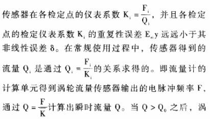 對于重復(fù)性很好而線性度較差的渦輪流量傳感器,要擴大其測量范圍或減小測量誤差,研究的核心問題是設(shè)計一-種便捷的使用方法,按照行鑒定規(guī)程利用原有檢定數(shù)據(jù),使渦輪流量傳感器在具有很小重復(fù)性誤差的流量范圍內(nèi),都能得到很準(zhǔn)確測量效果。