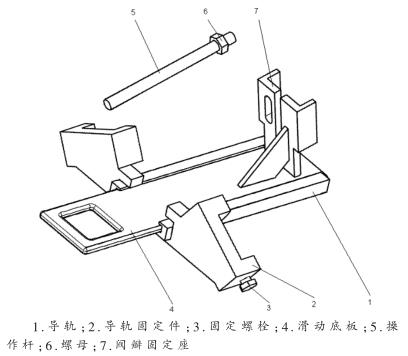 (1)閥瓣拆裝及接觸試驗(yàn)?zāi)K的特點(diǎn)閥瓣拆裝及接觸試驗(yàn)?zāi)K主要由導(dǎo)軌、導(dǎo)軌固定件、滑動(dòng)底板、操作桿、固定螺栓、閥瓣固定座等零部件組成。