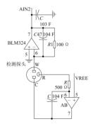 將電壓值放大2 000 ~3 000 倍,方便 A/D 轉(zhuǎn)換的同時還可提升檢測的準(zhǔn)確度?;?SO 2 -2000 傳感器的工作性質(zhì),煙氣中二氧化硫與傳感器進(jìn)行氧化反應(yīng)的過程中,因形成輸出電流而使工作電極與其電勢差出現(xiàn)變化,電勢差過大將造成檢測結(jié)果出現(xiàn)較大誤差。因此 SO 2 -2000 傳感器中采用運(yùn)算放大器連接工作電極和參考電極,工作電極與參考電極間的電勢差利用運(yùn)算放大器的負(fù)反饋?zhàn)饔脤?shí)現(xiàn)穩(wěn)定。