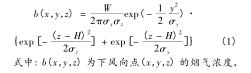 在循環(huán)流化床dn150渦街流量計煙氣脫硫排放效果監(jiān)測系統(tǒng)中,采用適于連續(xù)點(diǎn)源擴(kuò)散研究的高斯煙羽模型 。此模型忽略重力影響,將風(fēng)力情況設(shè)定為水平風(fēng),不存在垂直地面風(fēng)。在保證較長時間內(nèi)風(fēng)向、風(fēng)速、大氣穩(wěn)定度等環(huán)境因素均處于穩(wěn)定狀態(tài)的基礎(chǔ)上,構(gòu)建高斯煙羽模型,可仿真循環(huán)流化床dn150渦街流量計排放煙氣中二氧化硫沿下風(fēng)向擴(kuò)散的濃度分布,該模型滿足: