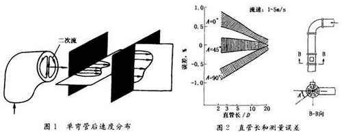 高溫電磁流量計(jì)流體流過彎管后,下游產(chǎn)生流速分布畸變,若是兩只鄰近相接的不同平面彎管,除流速分布畸變外還會(huì)有漩渦。這些現(xiàn)象要影響裝在下游的大部分類型流量儀表(除容積式等少數(shù)類型外)的測量值,因此通常要求在流量儀表安裝點(diǎn)之前有一定長度直管段,改善進(jìn)入儀表的流動(dòng)狀況。高溫電磁流量計(jì)受彎管影響較小,直管長度要求也遠(yuǎn)低于節(jié)流差壓式、渦街式等其他流量儀表。但是當(dāng)前高溫電磁流量計(jì)精度為測量值的0.5%,甚至0.2%~0.4,即使影響量較小,還是受到人們的關(guān)注。