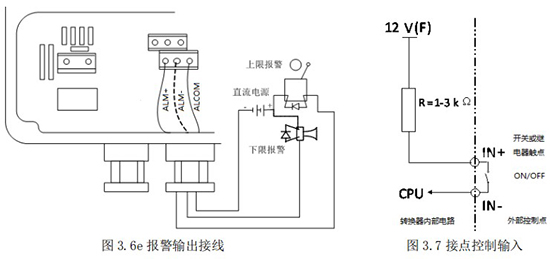 頻率(脈沖)、上下限報(bào)警、流向標(biāo)示等輸出均為集電極開路的電平輸出信號(hào)。