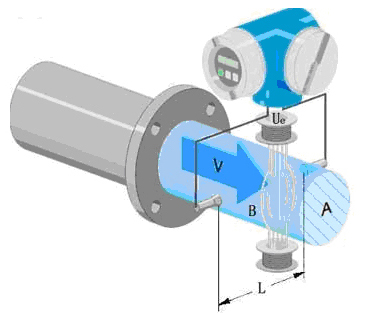 污水流量表工作原理是基于法拉*電磁感應(yīng)定律。流量計(jì)的測(cè)量管是一內(nèi)襯絕緣材料的非導(dǎo)磁合金短管。兩只電極延管徑方向穿通管壁固定在測(cè)量管上。其電極頭與襯里內(nèi)表面基本齊平。勵(lì)磁線圈由雙向方波脈沖勵(lì)磁時(shí),將在與測(cè)量管軸線垂直的方向上產(chǎn)生一磁通量密度為 B 的工作磁場(chǎng)。此時(shí),如果具有一定電導(dǎo)率的流體流經(jīng)測(cè)量管,將切割磁力線感應(yīng)出電動(dòng)勢(shì) E 。電動(dòng)勢(shì) E 正比于磁通量密度 B ,測(cè)量管內(nèi)徑 d 與平均流速 v 的乘積。電動(dòng)勢(shì) E (流量信號(hào))由電極檢出并通過(guò)電纜送至轉(zhuǎn)換器。轉(zhuǎn)換器將流量信號(hào)放大處理后,可顯示流體流量,并能輸出脈沖,模擬電流等信號(hào),用于流量的控制和調(diào)節(jié)。