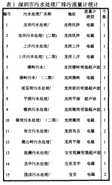 截止目前,深圳市內(nèi)外所有污水處理廠(包括人工濕地、快滲)共計(jì)30余座,重點(diǎn)監(jiān)控的排污流量計(jì)50余臺(tái)。統(tǒng)計(jì)數(shù)據(jù)如下表(見(jiàn)表1)