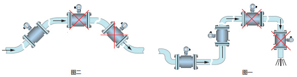 液體電磁流量計(jì)對安裝點(diǎn)的上、下游工藝管有一定的要求,否則影響測量精度。